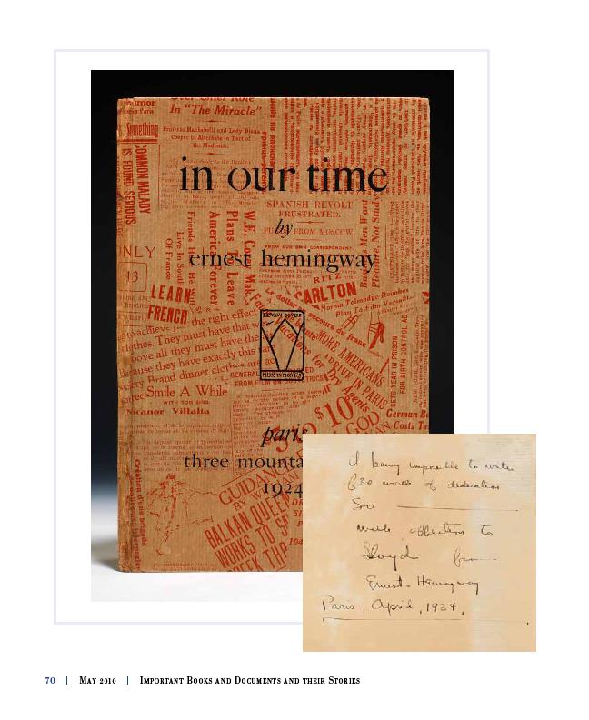 Com efeito na história “Common Sense” de Thomas Paine parece-me bastante raro e na literatura “In our time” de Ernest Hemingway é seguramente um dos livros mais raros da sua bibliografia e com bastante procura.